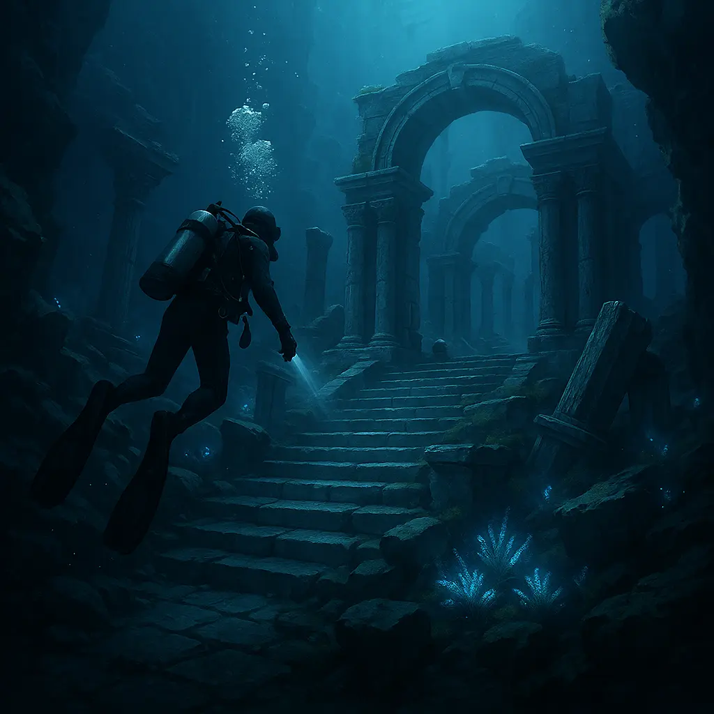 Discover the lost underwater world, surrounded by ancient secrets, light crystals, and mystical depths at 7,000 meters below the surface.